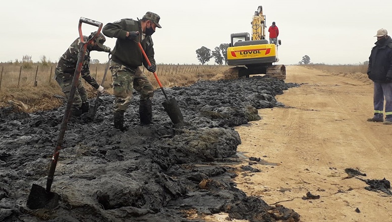 En la mañana del sábado efectivos del Comando de Prevención Rural (CPR), con el aporte de una retroexcavadora, iniciaron la excavación del lecho del canal, removiendo varias toneladas de barro.