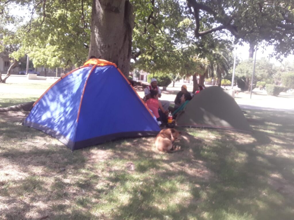 La familia desalojada sigue viviendo en carpas en la Plaza San Martín