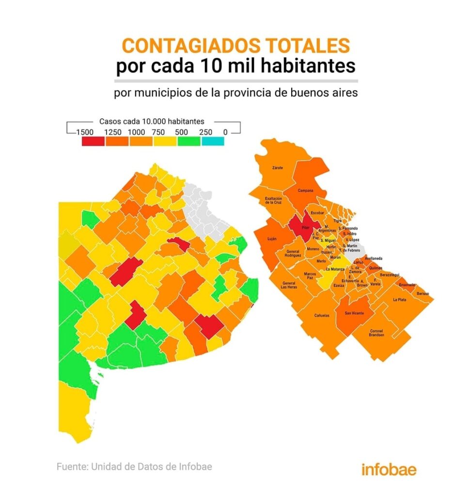 Casos positivos cada 10 mil habitantes: Trenque Lauquen está en el lugar 42 entre 135 distritos