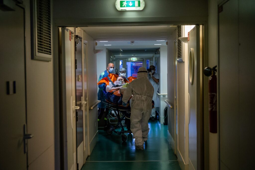 (200423) -- PARIS, 23 abril, 2020 (Xinhua) -- Imagen del 22 de abril de 2020 de una paciente con COVID-19 siendo trasladada a una ambulancia en un establecimiento de viviendas para personas mayores dependientes, en Epinay sur Seine, cerca de París, Francia. Hasta el miércoles, 29.741 personas que dieron positivo al coronavirus han sido hospitalizadas, 365 menos en las últimas 24 horas, con lo que se consolida una semana de descensos. El número de pacientes que requieren terapia intensiva bajó por decimocuarto día consecutivo. (Xinhua/Aurelien Morissard) (jg) (vf) (ce)