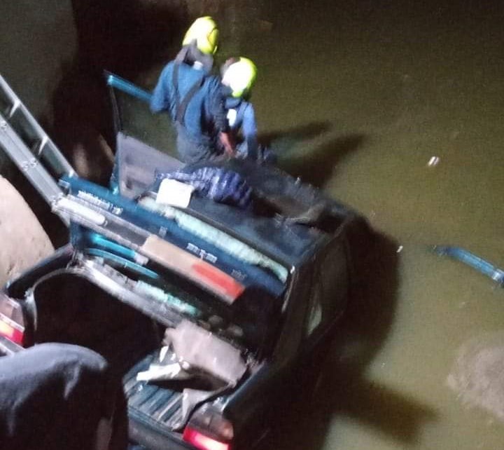 Un auto cayó en un canal pluvial y el conductor se encuentra hospitalizado