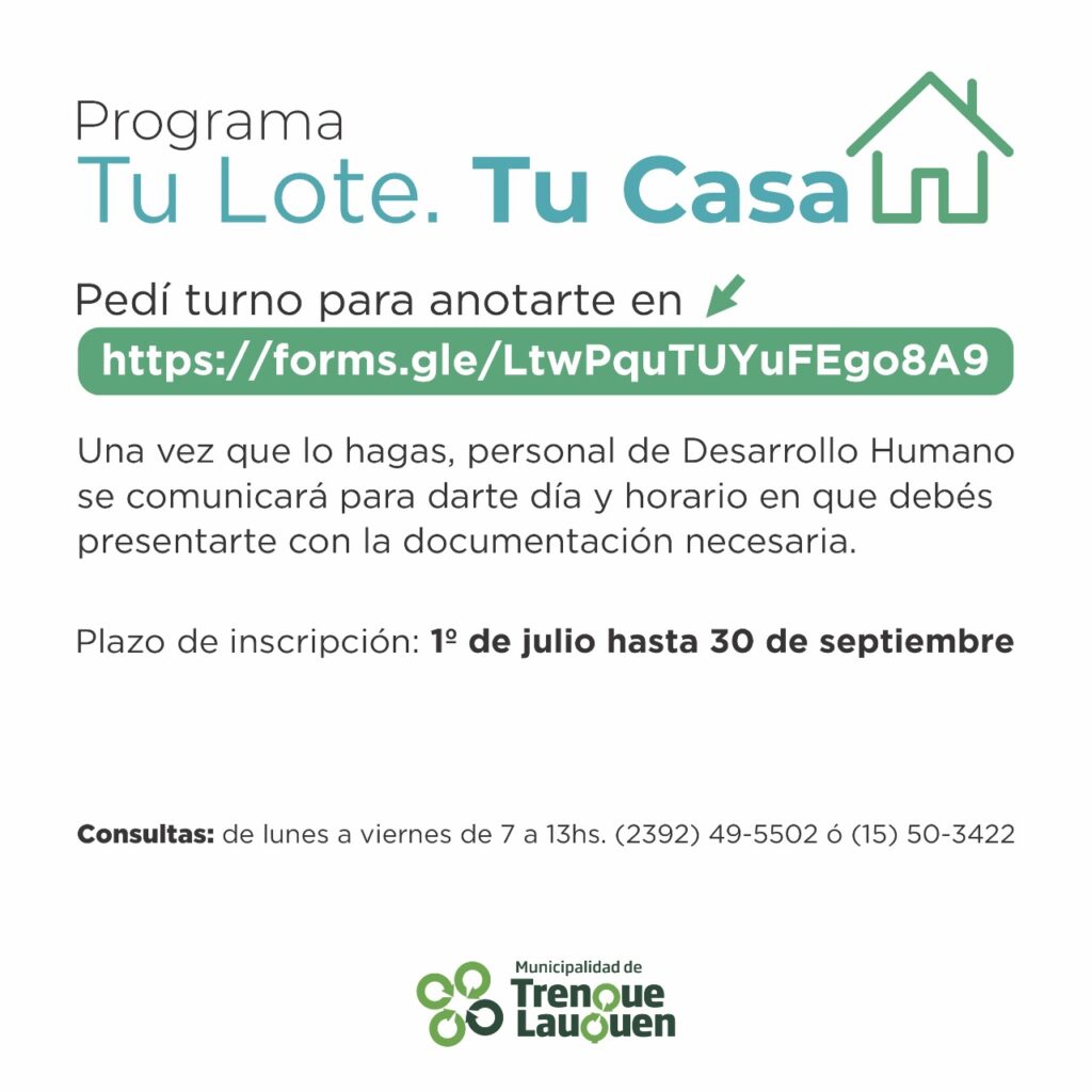 El jueves comienza la inscripción para el plan “Tu lote, tu casa”