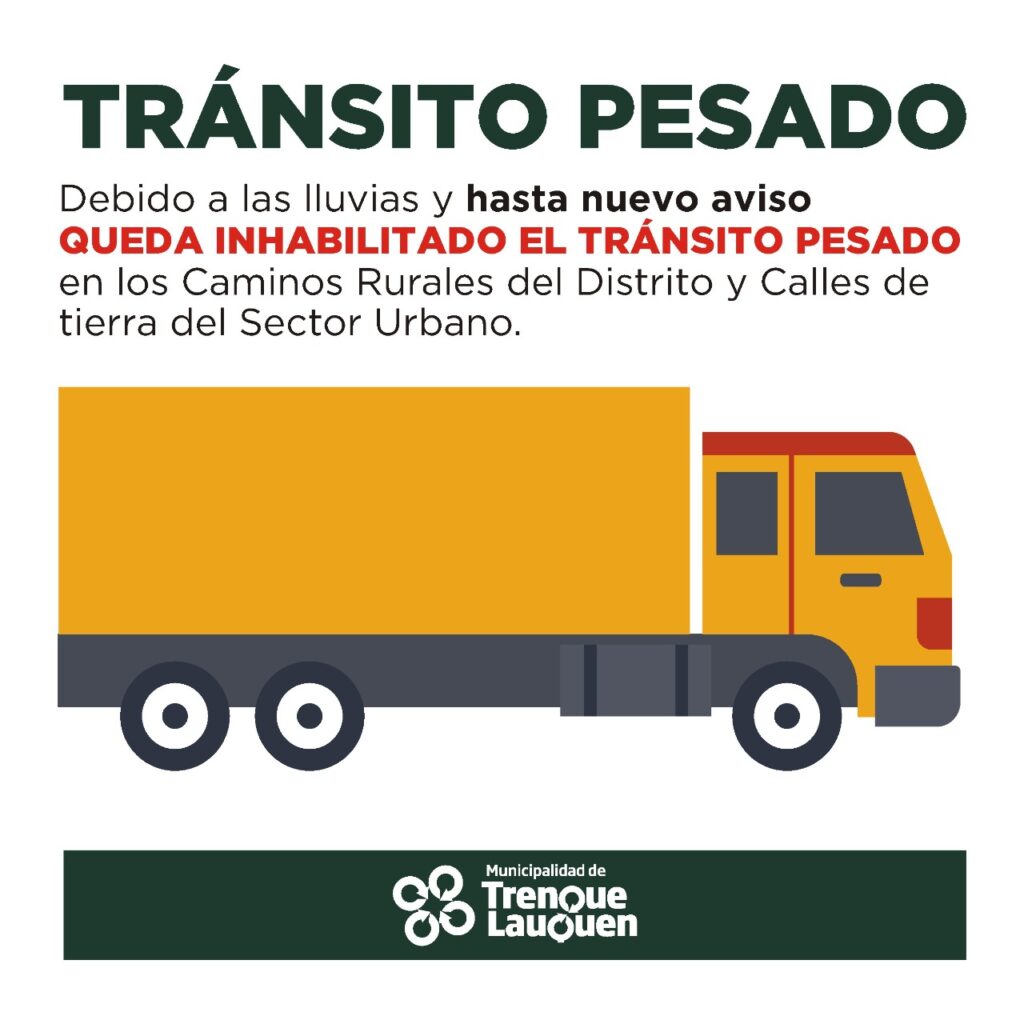 Queda inhabilitado hasta nuevo aviso el tránsito pesado por los caminos rurales y de tierra