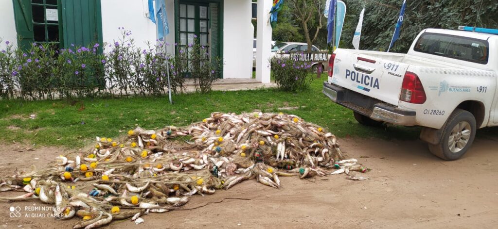 Golpe a la pesca clandestina: la Policía decomisó 800 kilos de pejerrey y 600 metros de red