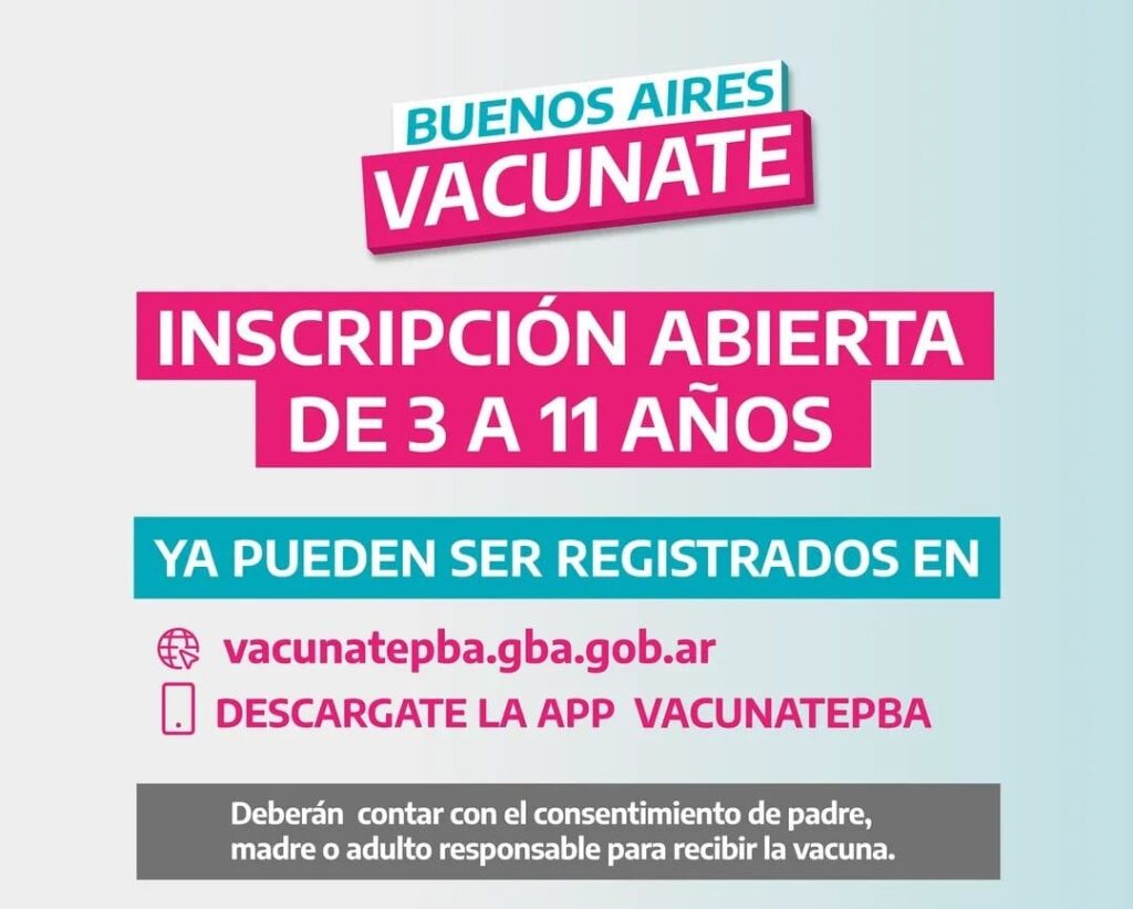 La Provincia anunció que ya se pueden inscribir los chicos de 3 a 11 años para vacunarse