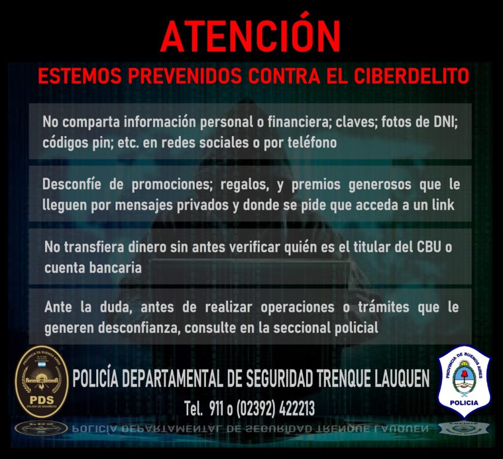 Con el fin de prevenir que vecinos sean estafados bajo la modalidad “Cuento del tío” se solicita a modo de colaboración, se alerte a la comunidad, que se vienen recepcionando varias denuncias de víctimas, que han sido engañadas y vulneradas en su buena fe.