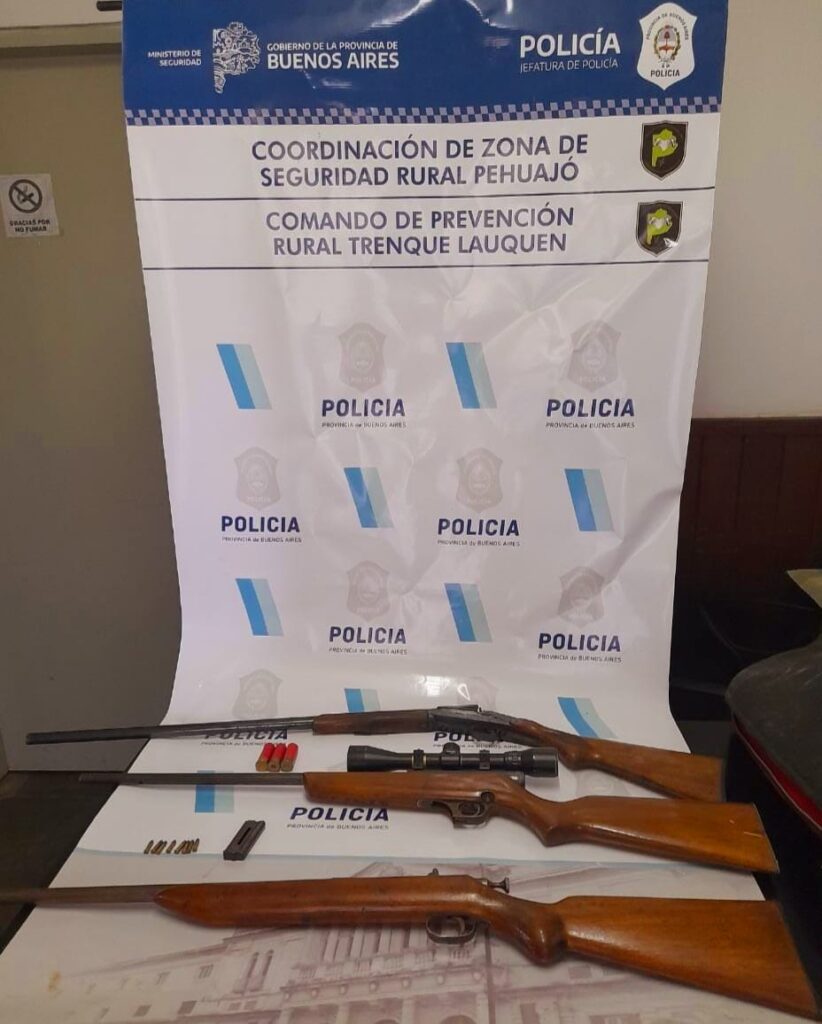 En la diligencia judicial y dentro del domicilio de Giménez el personal policial actuante Secuestro dos escopetas y una carabina, armas estás aptas para el disparo y junto a sus correspondientes municiones. Se procede a conducir al imputado Giménez al Comando de Prevención Rural junto las armas de fuego secuestradas que permanecen a disposición de la justicia. Con respecto a Giménez y previo llevarse a cabo los cumplimientos legales correspondientes, el mismo de retira en libertad de la unidad policial por no poseer otro impedimento legal en su contra, informó la Policía.