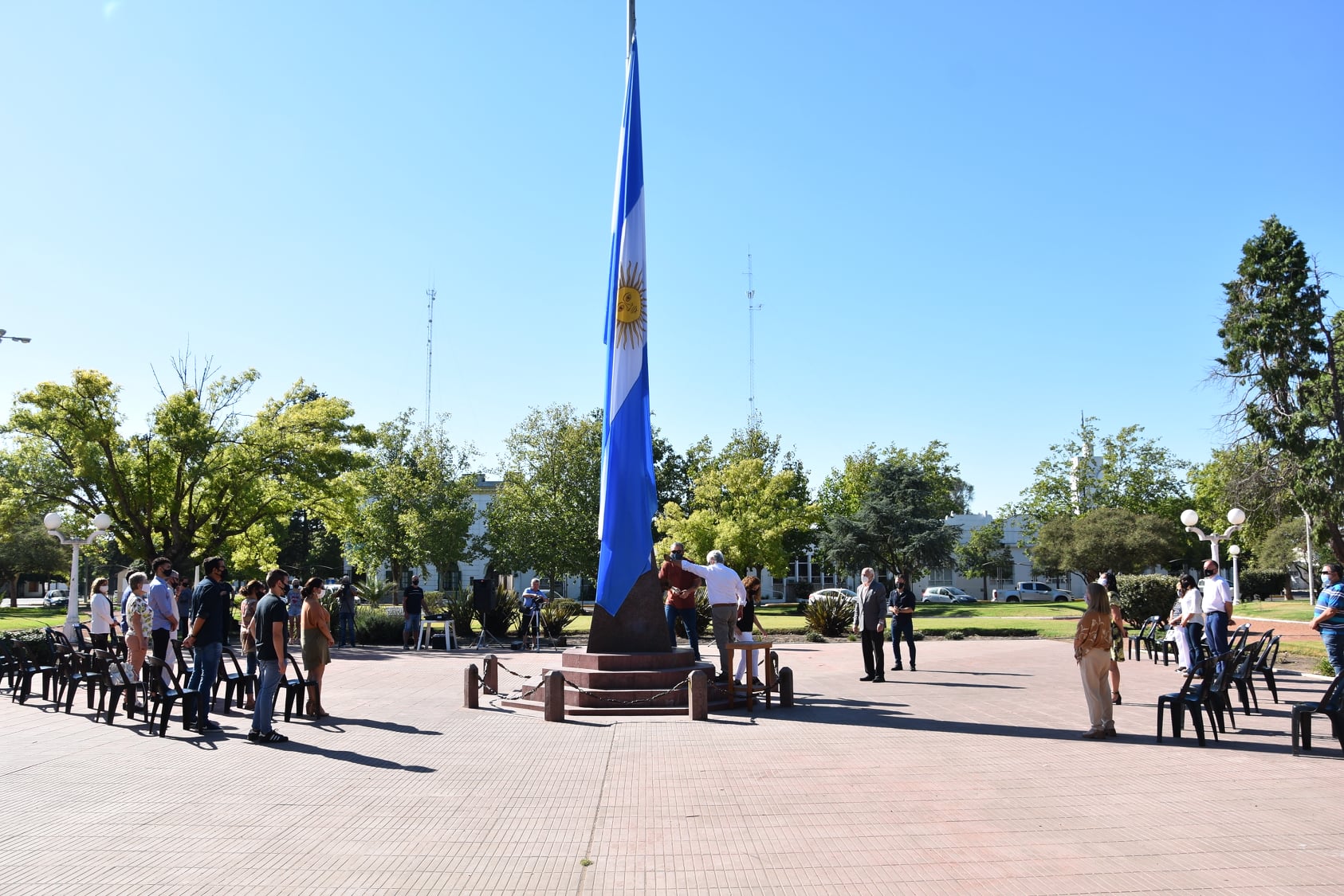 Todo comenzó como es habitual con el izamiento del pabellón nacional en el mástil de la plaza central y la entonación del Himno Nacional Argentino. Un minuto de silencio trajo de nuevo, por un instante a los treslomenses que ya partieron y se extrañan.
