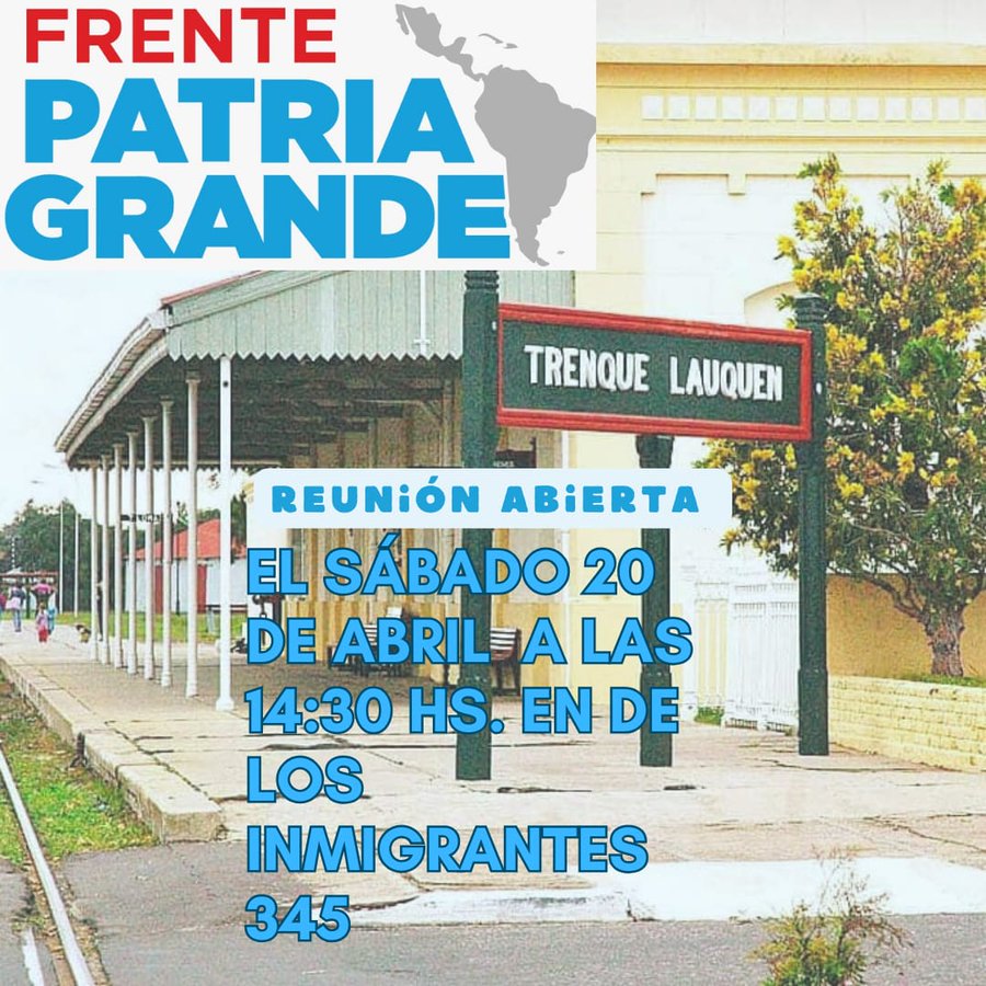 A través de las redes sociales la vecina Eva Silvana Gallardo publicó una convocatoria para el próximo sábado en Trenque Lauquen para armar aquí el Frente Patria Grande, el partido político de Juan Grabois.