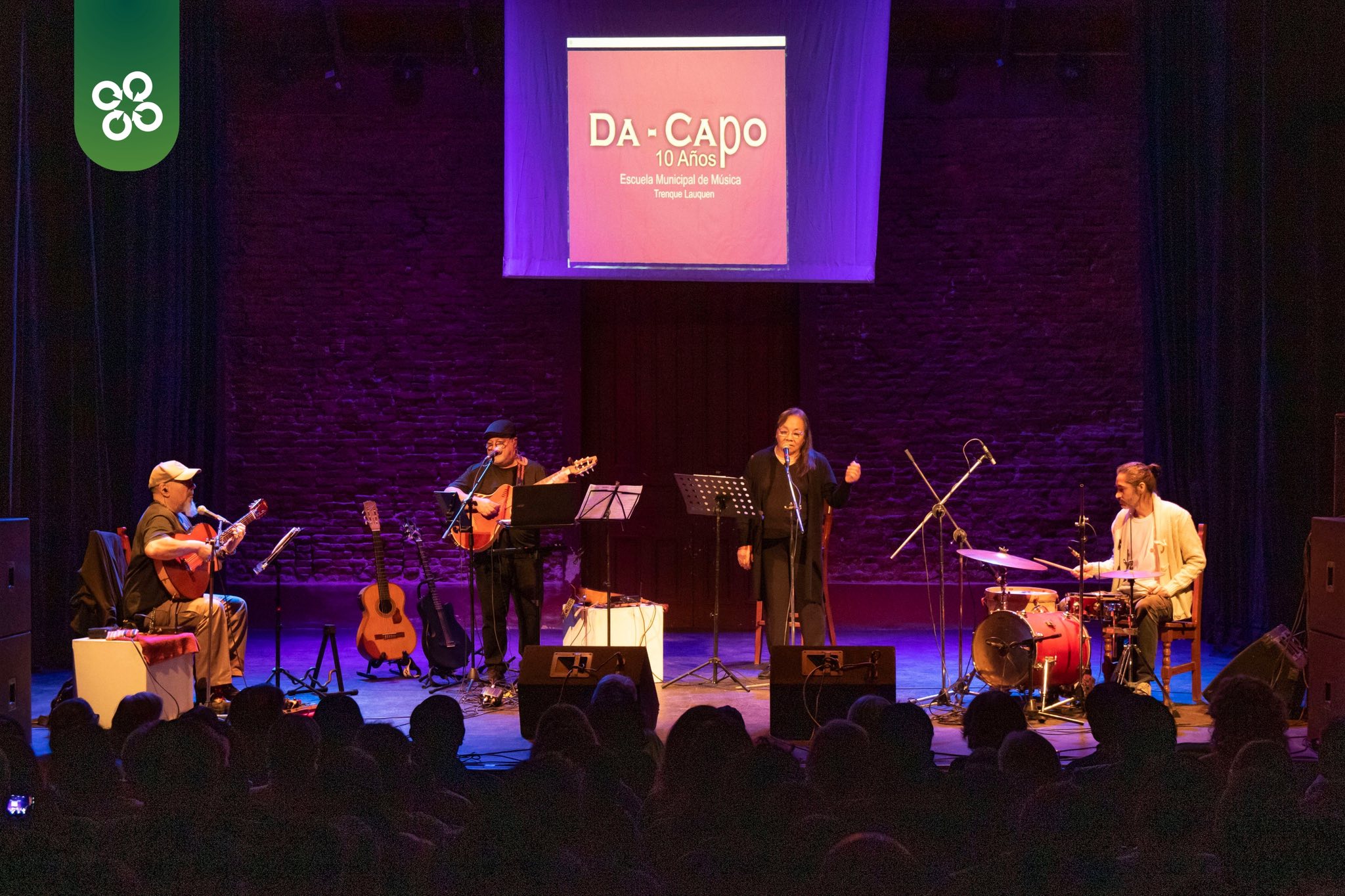 Da Capo se formó bajo la órbita de la Escuela Municipal de Música en el año 2016, y desde entonces es dirigida por Orlando Moro. Anoche, desde el escenario del Teatro, Moro recordó cómo surgió la idea de crear esta agrupación “pensando, junto a Marichi y Gustavo Bomar -los socios fundadores – en los cantores y cantoras que cantan con pistas o que no tienen una banda para sus presentaciones. Empezamos convocando a distintos cantores y así han pasado 10 años”.