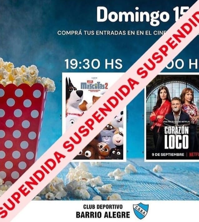 El Club Barrio Alegre suspendió su función de auto cine programada para este domingo por la cantidad de casos positivos de covid 19 en la ciudad.