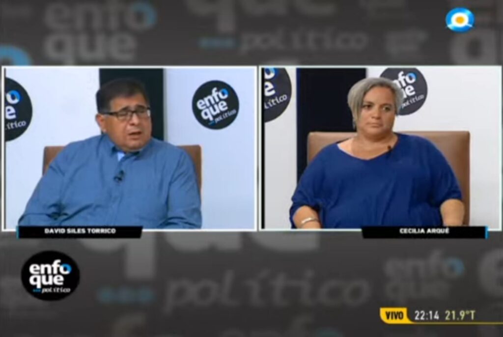 David Siles Torrico (Frente Juntos) y Cecilia Arqué (Frente de Todos) hablaron y debatieron anoche en el programa ENFOQUE POLÍTICO DE CANAL 12 LA TV PÚBLICA y en un momento se les preguntó ¿por qué el Consejo Escolar nadie habla de la obra del derrumbe en Los Médanos, que según la Municipalidad no estaba autorizada?