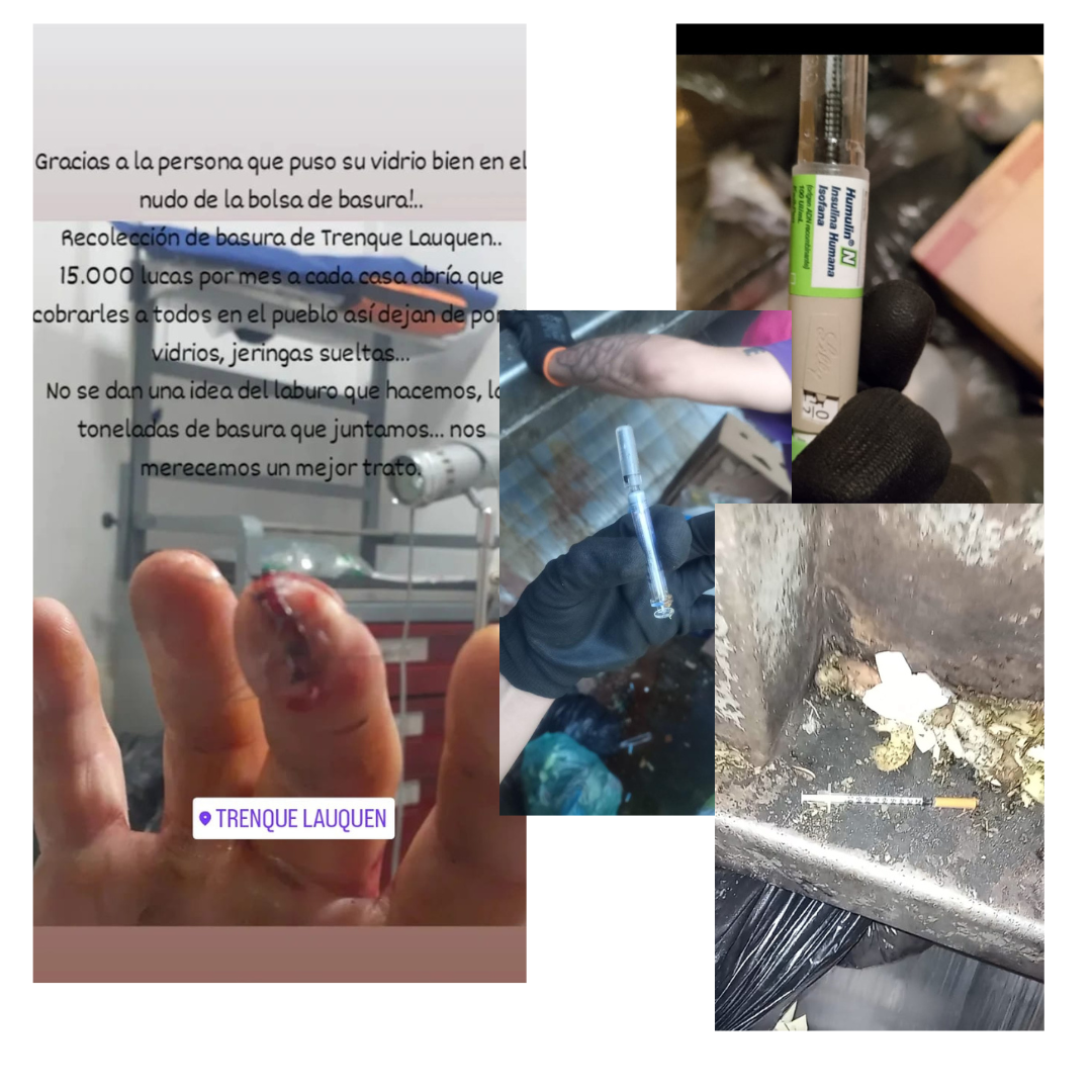 Un recolector de basura de la Municipalidad de Trenque Lauquen posteó en las redes sociales luego de recibir puntos de sutura en el Hospital Municipal, tras un corte producido por vidrios dentro de las bolsas de residuos.