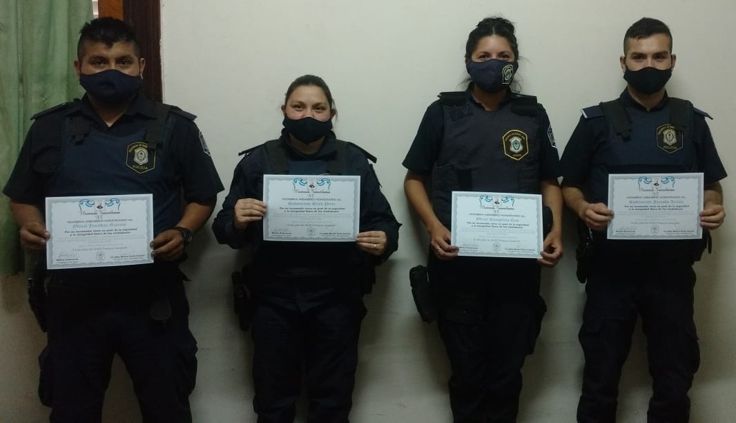 Los Policías reconocidos son: Subteniente Maria Belen Perez; Subteniente Facundo René Arrieta; Oficial Jonatan Daniel Galeano y la Oficial Evangelina Nair Erro.