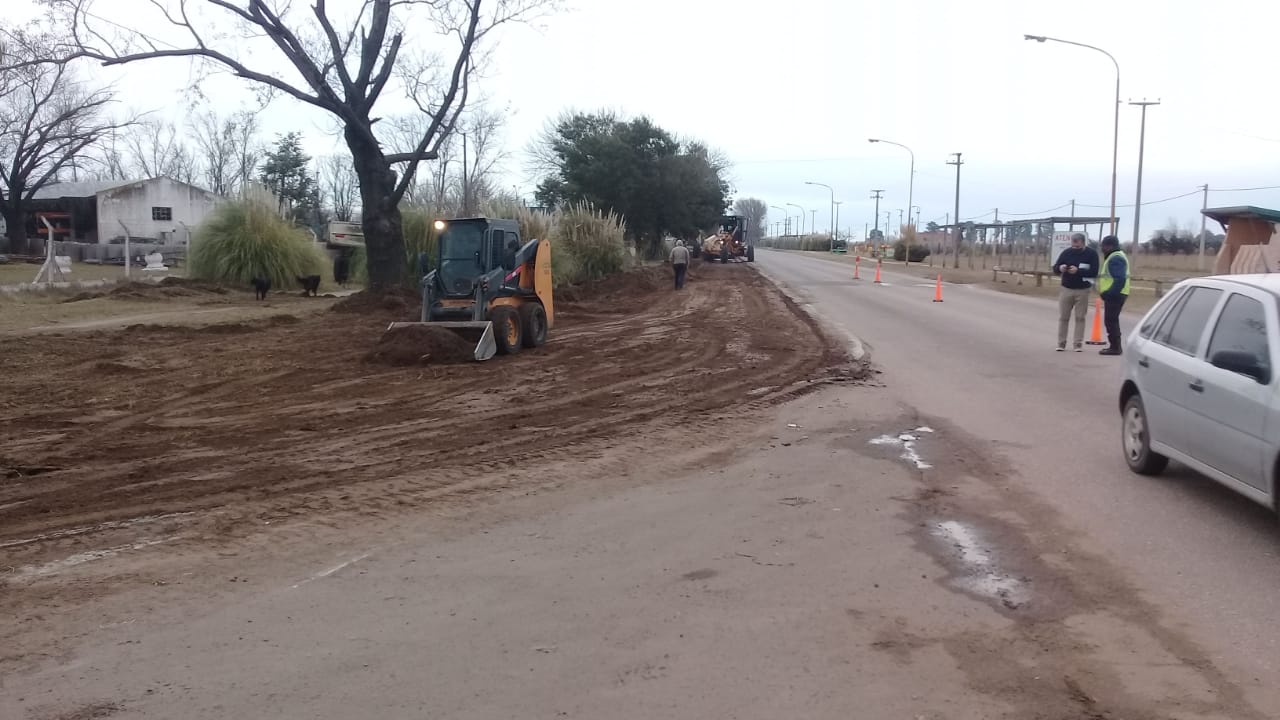 Personal y maquinaria de la dirección de Infraestructura, dependiente de la subsecretaría de Servicios Públicos del Municipio, con el aporte de equipamiento cedido por otras áreas municipales, está trabajando en la nivelación de la banquina en el acceso Perón, en el tramo comprendido entre el ingreso al Polideportivo Municipal y la rotonda, en Paul Harris.