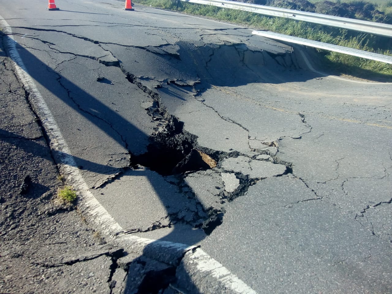 Autoridades nacionales y municipales trabajan para reparar la cinta asfáltica garantizando un sistema de drenaje en la laguna.