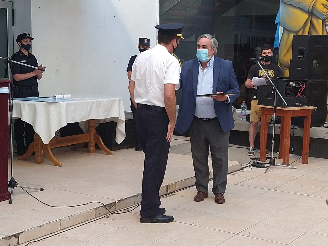 “Más que nunca afloró el compañerismo y la camaradería propia de nuestros hombres y mujeres de la Fuerza. Uno observa con orgullo que la vocación de servicio del personal policial continúa siendo la misma a través de los años, la sociedad evoluciona con el paso del tiempo y la Institución debe ir acompañando esos cambios para estar siempre a la altura de las circunstancias, atendiendo los nuevos requerimientos y demandas de los ciudadanos. Hoy nuestro objetivo es ser una policía moderna, eficiente, con perspectiva de género, de proximidad con el vecino, y se está logrando, sabemos que se trabaja con mucha responsabilidad y empeño para estar al servicio de la comunidad, lo vemos con el trabajo cotidiano”. Por último “quiero agradecer el apoyo permanente del Sr. Superintendente de la Región interior Oeste II, al Sr. Intendente Municipal y equipo por su acompañamiento y apoyo logístico, y a los Jefe de todas las Dependencia descentralizadas con las cuales trabajamos muy bien”, concluyó.