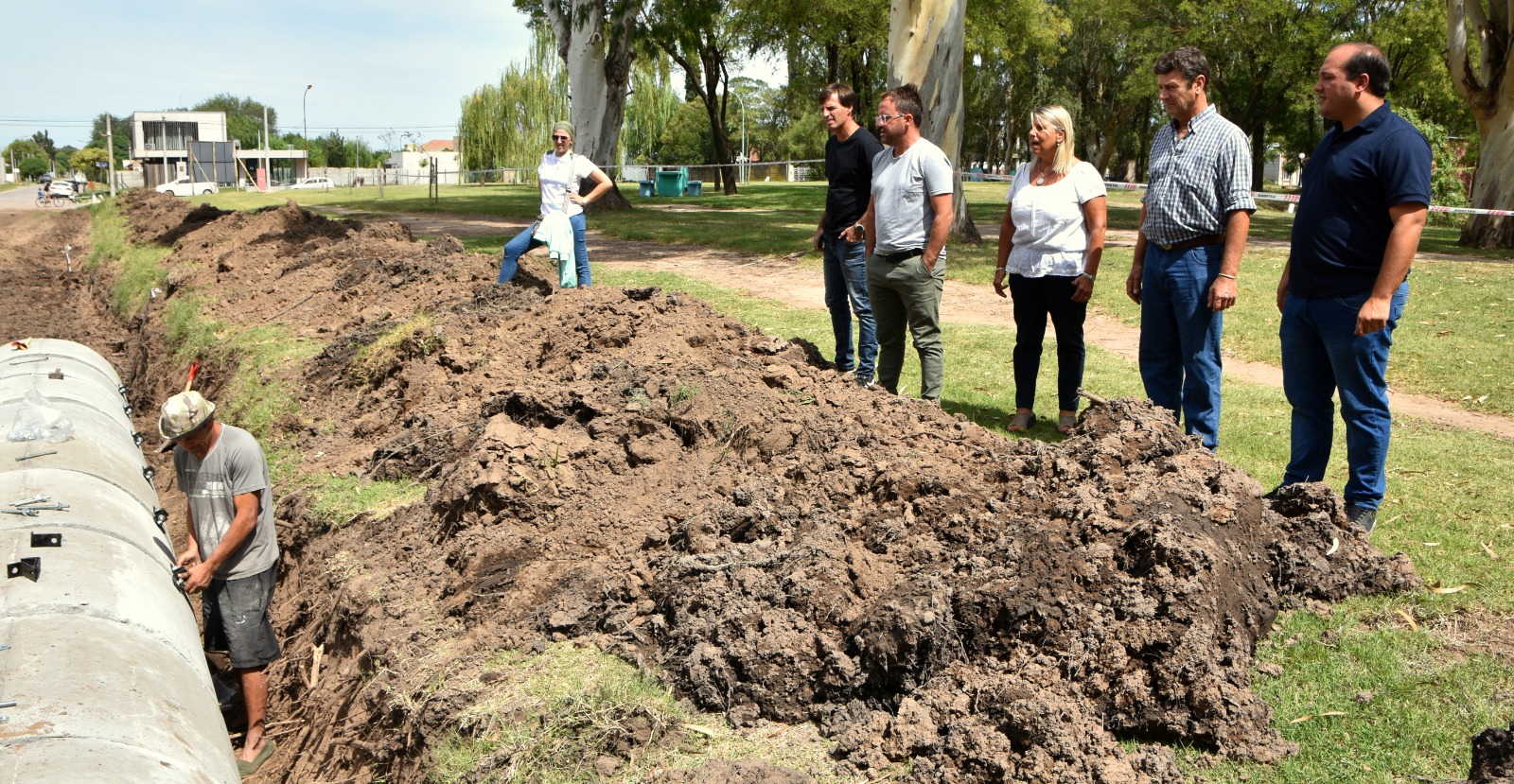 Luego de mantener una reunión en el despacho del funcionario, la comitiva inició una visita por la obra de desagües pluviales que se ejecuta en la calle Linier, paralelo al Parque Municipal, y que fue diseñada en el Plan Hídrico elaborado por la Universidad Nacional de La Plata.