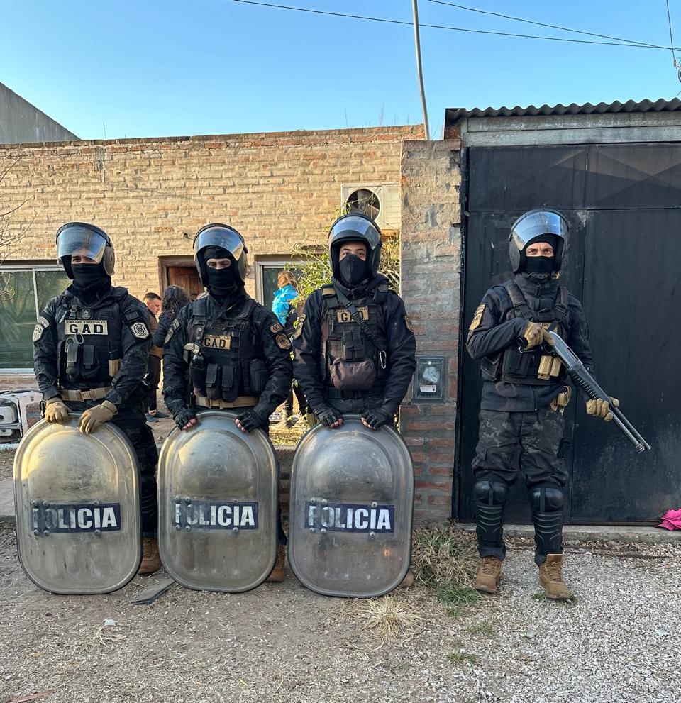 El allanamiento se llevó a cabo este domingo por la mañana con resultado positivo, logrando el secuestro del caño con el cual se provocó la agresión y prendas de vestir. Los acusados quedaron formalmente imputados por amenazas y lesiones, se trata de Jorge Fontana (53) y su hijo Josue Damian (18). Participaron del allanamiento personal de Comisaría 1ra, juntamente con personal del  Destacamento Beruti, Grupo GAD y DDI T. Lauquen.