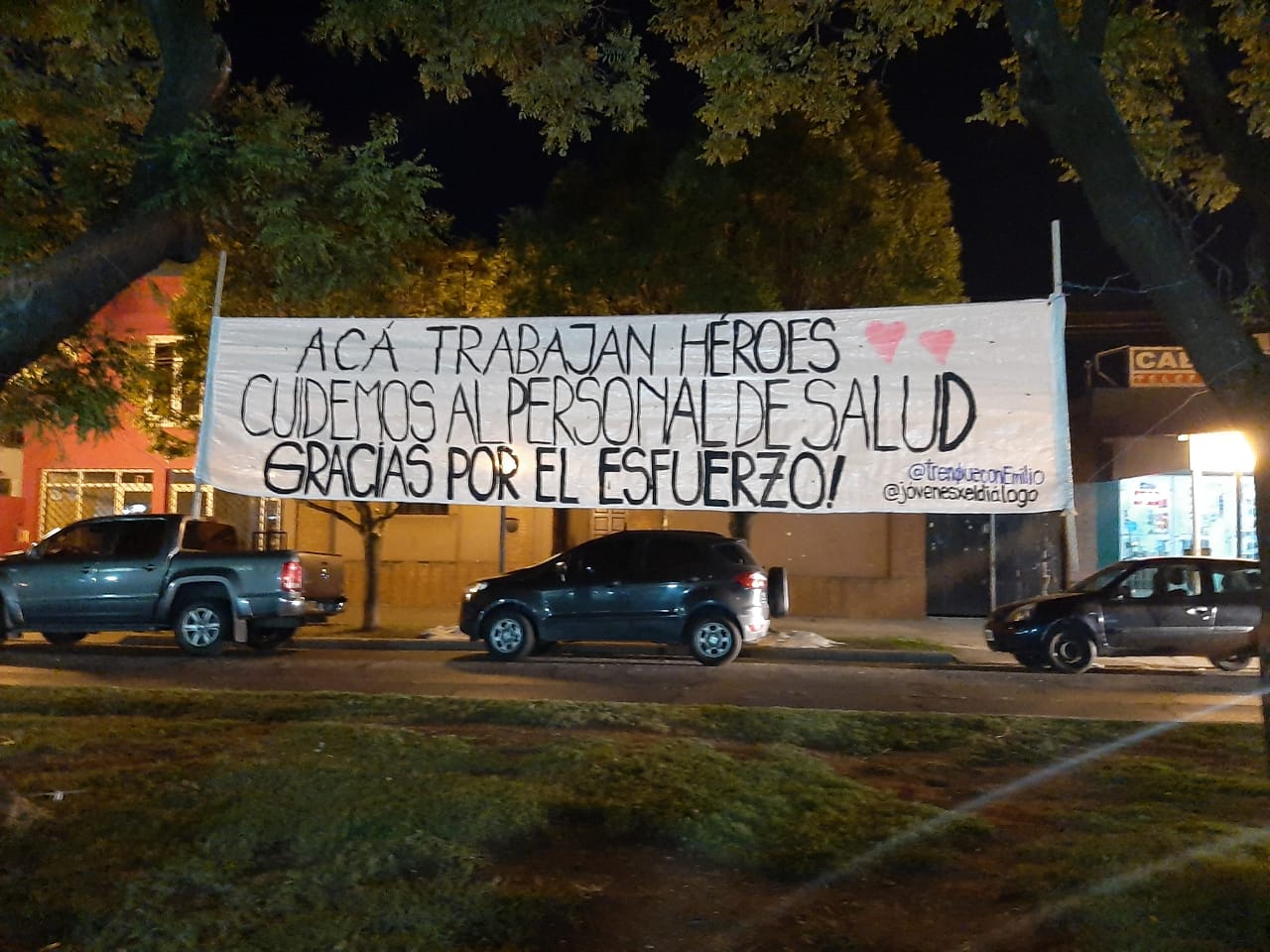 Los jóvenes monzonistas de Trenque Lauquen colocaron en la tarde noche de hoy una bandera de agradecimiento al trabajo del personal de la salud de este distrito. La misma señala «Acá trabajan Héroes cuidemos al personal de salud. Gracias por el esfuerzo».