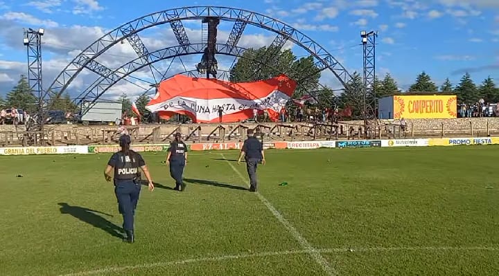 La Policía explicó el operativo en cancha de Barrio Alegre e informó que hay un detenido y dos efectivos heridos