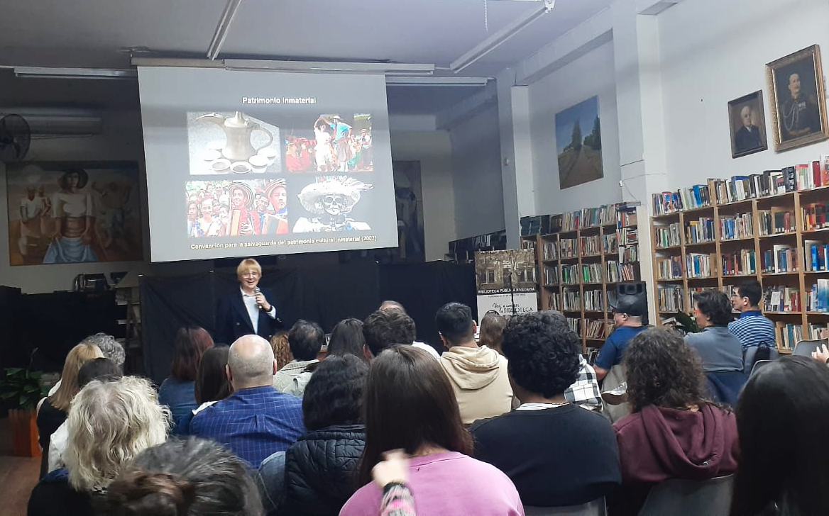 La sede fue la Biblioteca Pública Rivadavia, en la que la Dra. Endere ofreció la charla “Debates actuales sobre el patrimonio cultural”, ante un atento y concurrido marco de público.