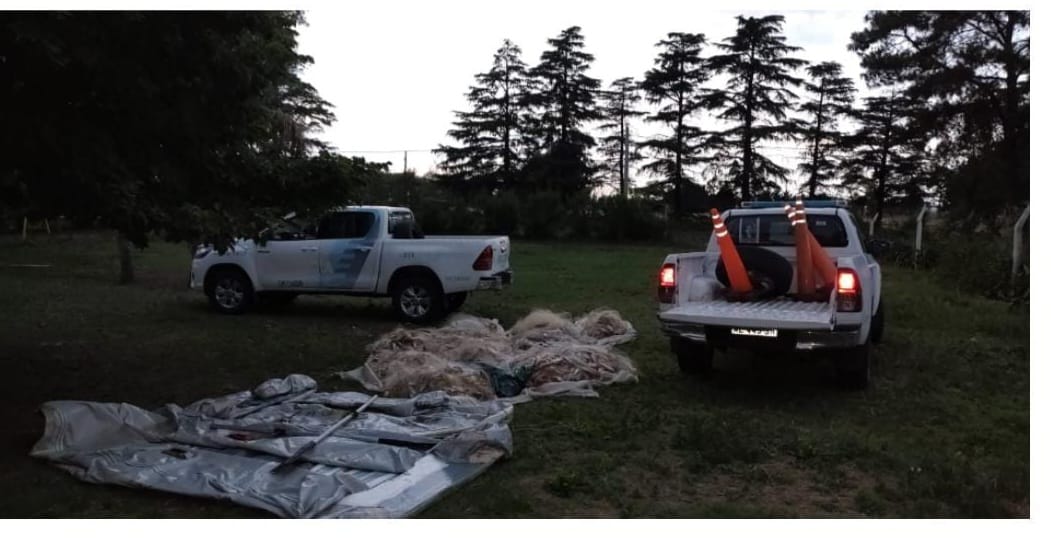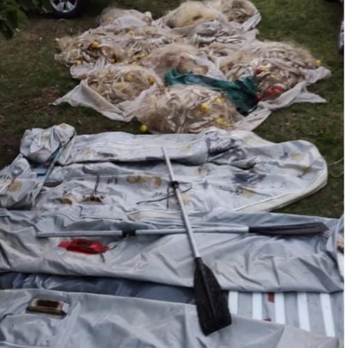 Ante una evidente infracción a la ley de pesca provincial se procedió al secuestro de las redes mencionadas, arrojando un total de 25 paños de 50 metros cada uno de ellos y a la totalidad del pescado enmallado (aproximadamente 600 kg).
