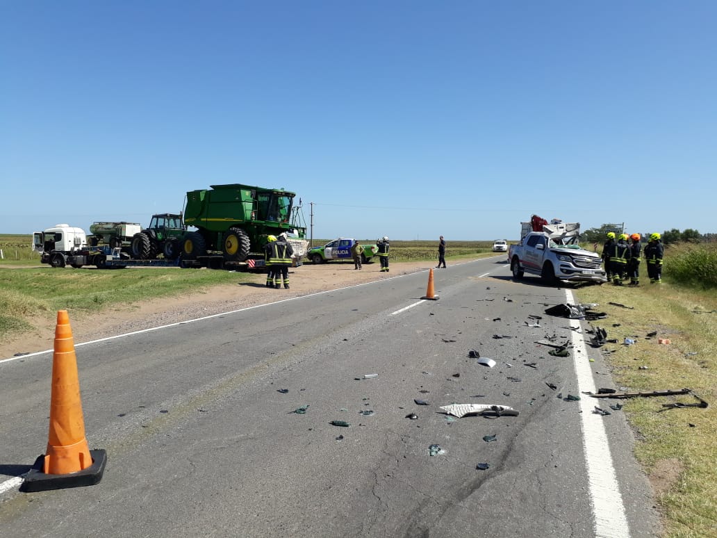 Según fuentes de Bomberos, el camión que transportaba maquinaria agrícola maniobró para entrar en un campo y la camioneta se encuentra con la última parte del carretón sobre la ruta y colisionó en todo el lateral ocasionando el fallecimiento del conductor de la camioneta.
