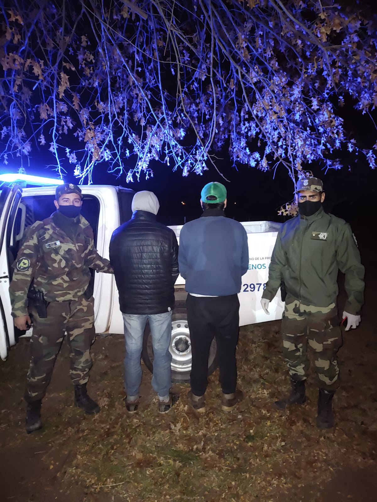 De forma inmediata el personal de la Patrulla Rural procedió a la aprehensión de estas personas por el delito a prima facie de robo calificado, permaneciendo desde ese momento los aprehendidos a disposición de la justicia.