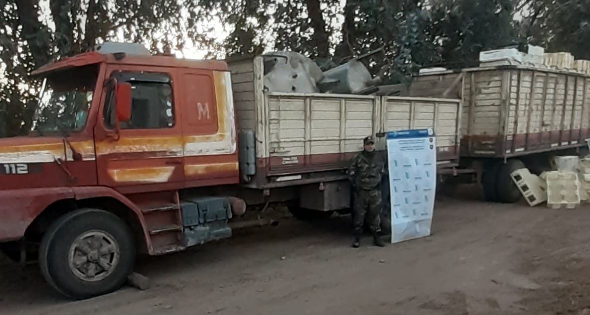 Asimismo se constató al arribo de los uniformados que estas personas ya tenían cargada en la caja de un camión marca Scania, varios elementos de gran porte y de acero inoxidable como bateas, tanques y cañerías entre otras cosas.