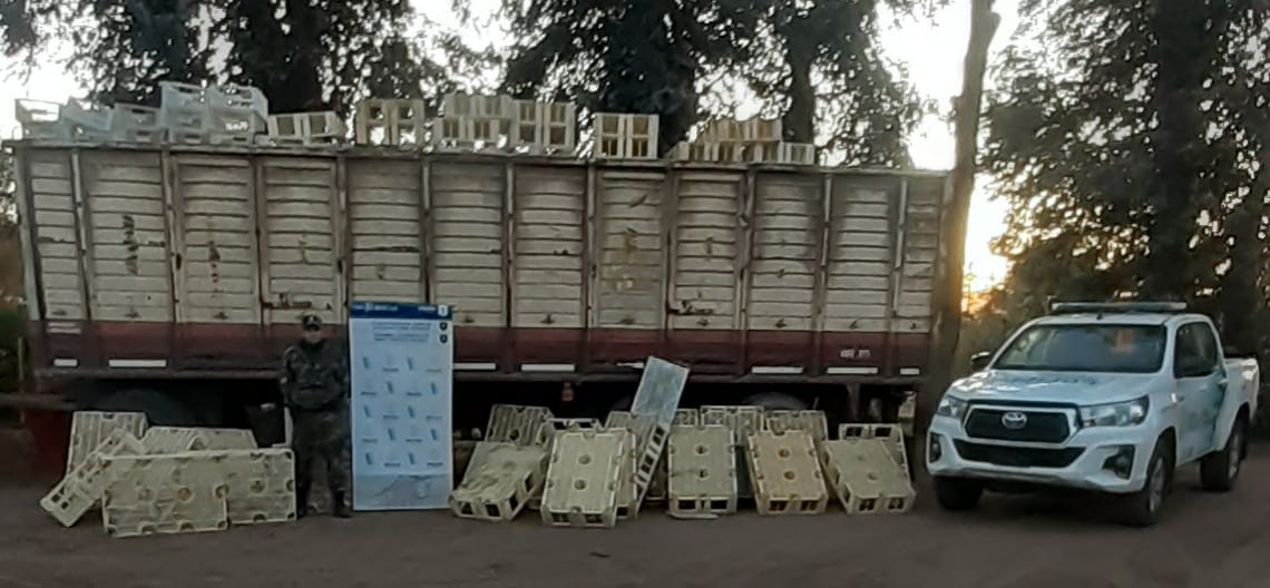 Posteriormente se observó que detrás del edificio se hallaba un acoplado marca Montenegro y en cuyo interior habían cargado con fines de ser sustraído, más de 1000 cajones plásticos de diferentes medidas utilizados en la elaboración de quesos.