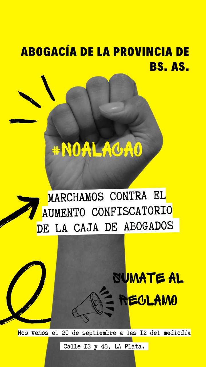 En un comunicado, el Colegio de Abogados de La Plata aseguró que se van a manifestar “ante el aumento confiscatorio de la CAO, que OBLIGATORIAMENTE, nos impone pagar la Caja de Previsión Social de Abogados de la provincia de Bs. As., sumado a los juicios de apremio que plantean ante colegas que no pueden pagar semejantes montos”.
