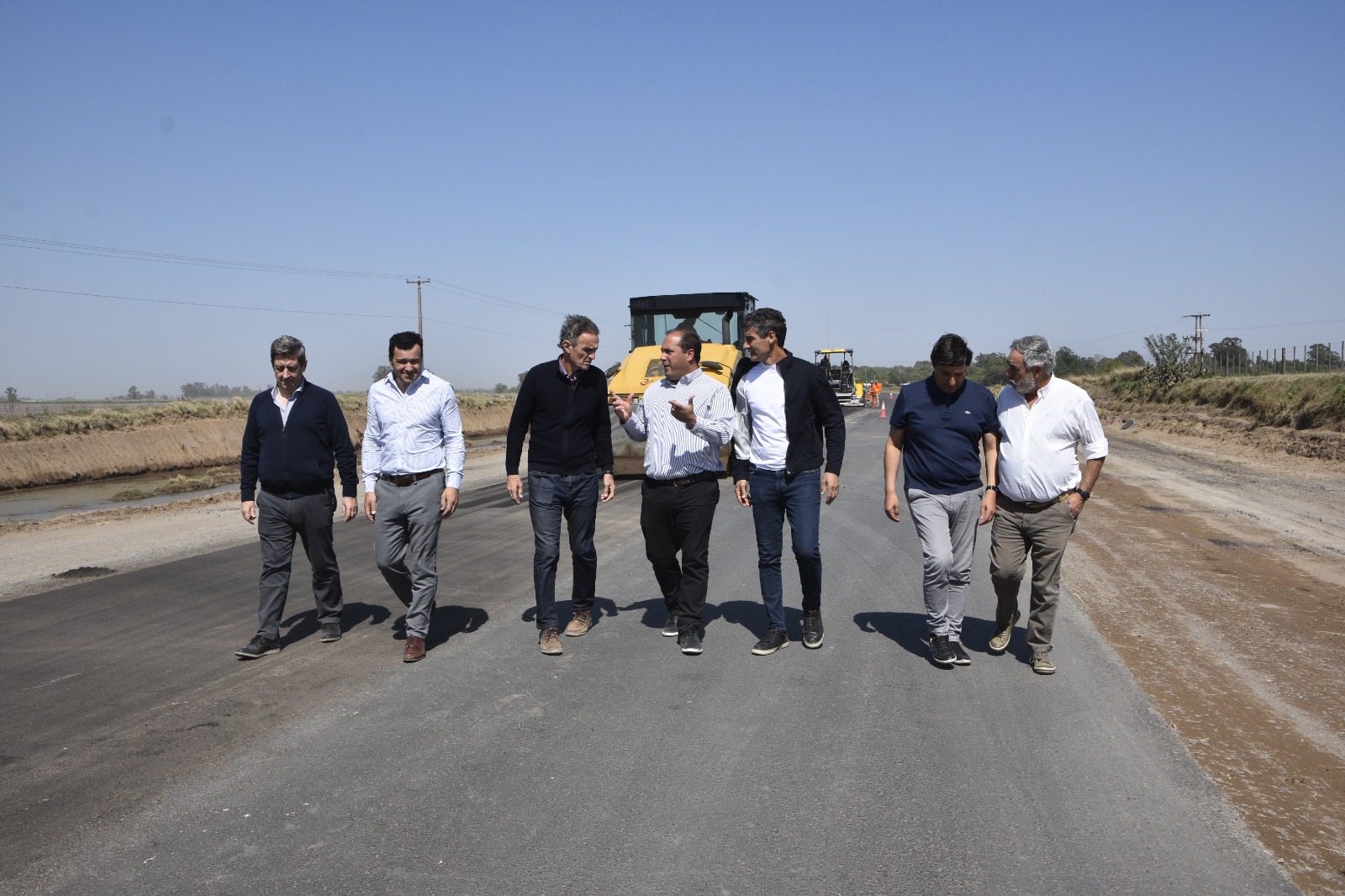 Durante la jornada, el ministro, los intendentes y los funcionarios recorrieron el tramo que actualmente se está asfaltando, a metros del ingreso a la localidad de Girodías, y participaron de una charla con vecinos, productores y dirigentes donde se analizaron los avances del proyecto y su impacto en el desarrollo productivo y logístico de la región.