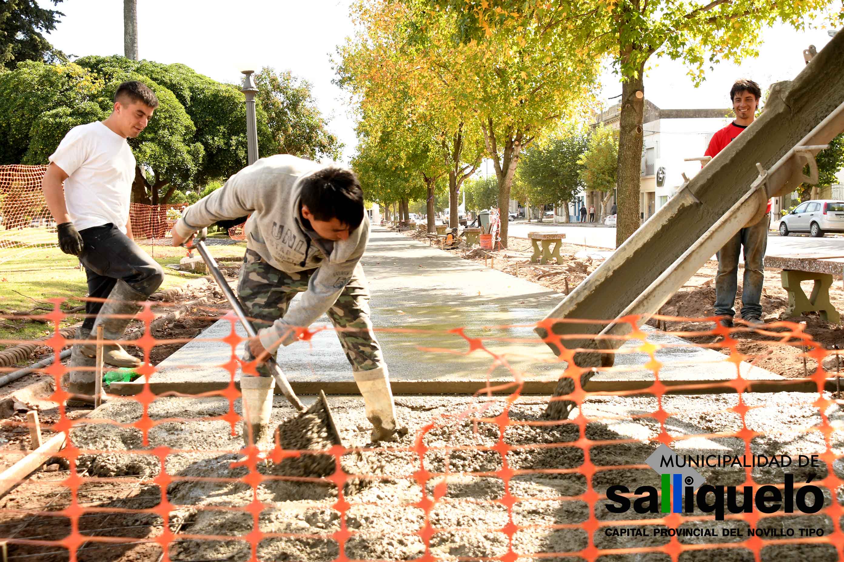 Esta mañana el Intendente Municipal Jorge Hernández junto con la Directora de Obras y Servicios Públicos de la Municipalidad Arquitecta Mariana Belloli Orrijola estuvieron en el lugar donde la empresa se encuentra colocando el material, la etapa que se está ejecutando ahora se centra en la cara de la Plaza que da sobre la calle Pueyrredón, en su parte interior, continuando mañana en la cara externa de esa vereda. Una vez concluida esa parte se avanzará sobre la Av. 25 de Mayo y así dejar concluida esta obra que resulta de gran importancia para todos los vecinos de la ciudad de Salliqueló, según informó la Municipalidad.