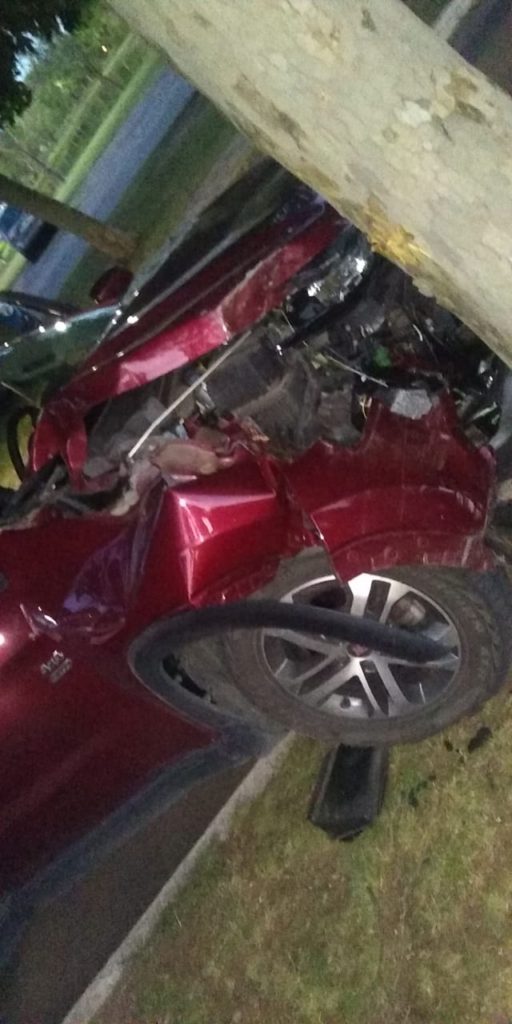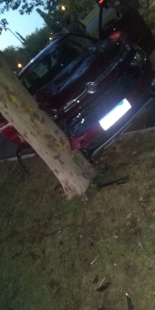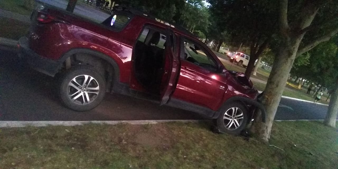 Una camioneta Fiat Toro terminó incrustada contra un árbol en el Parque Municipal, cuando su conductor perdió el control por una distracción y terminó sobre una de las veredas en el sector de las canchas de fútbol.