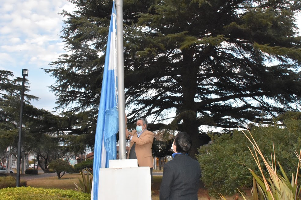 El intendente municipal, Miguel Fernández, encabezó hoy (sábado) por la mañana el acto oficial por el Día de la Bandera y en conmemoración del Bicentenario del fallecimiento del General Manuel Belgrano que se realizó en Plaza Italia, ubicada en Cuello y Monferrand, con la presencia de un grupo reducido de autoridades y sin las delegaciones escolares y público en general debido a la emergencia sanitaria por el Covid-19, que en esta etapa obliga al distanciamiento social, preventivo y obligatorio para prevenir la propagación de la enfermedad.
