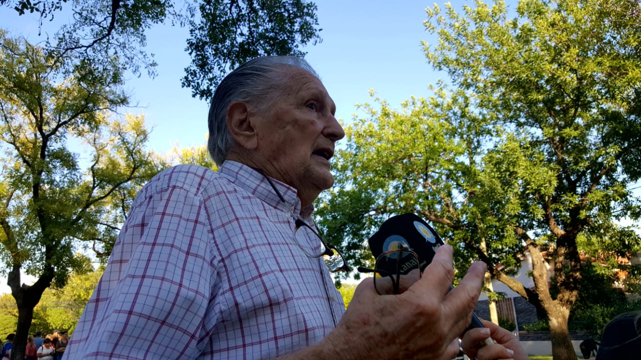 Cleman Azpiroz, una leyenda viviente de la historia del CEF 18 participó de la marcha hoy frente al Consejo Escolar y habló para los medios. Adelantó que darán pelea.
