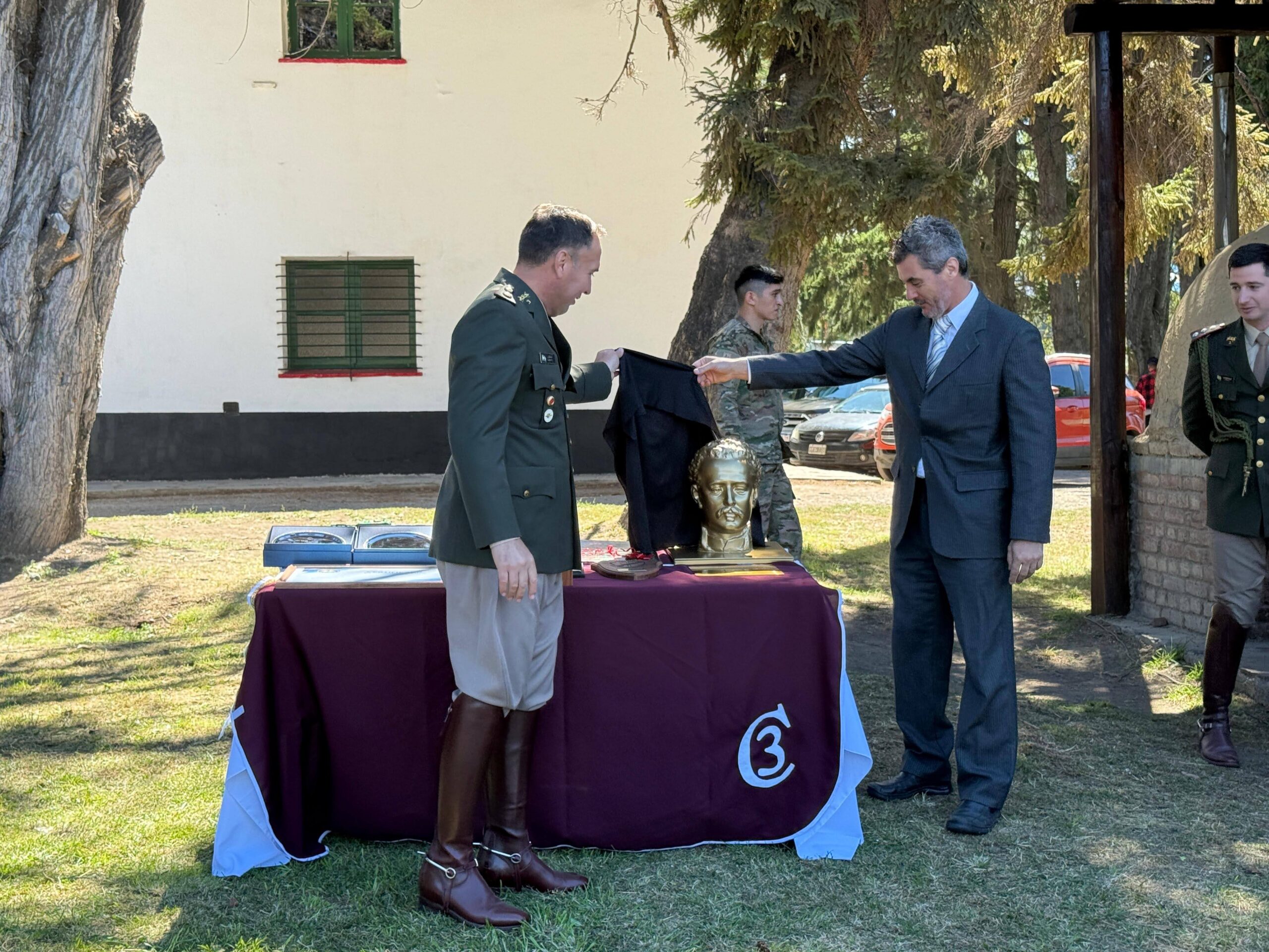 La Municipalidad de Trenque Lauquen, a través del director de Cultura, Guillermo Ruiz, participó de los actos centrales por el Bicentenario del Regimiento 3 de Caballería del Ejército Argentino, que tiene asiento en la ciudad de Esquel (provincia de Chubut), y en ese marco entregó a la Unidad una escultura del general Conrado Villegas.