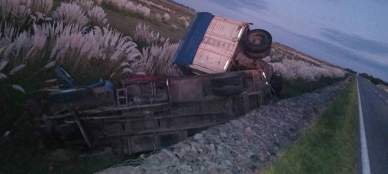 Un camión volcó esta madrugada en la ruta nacional 33 cerca de Trenque Lauquen y cayó desde el alto hasta el banquina que se encuentra en profundidad en ese sector, pero su conductor afortunadamente resultó ileso.