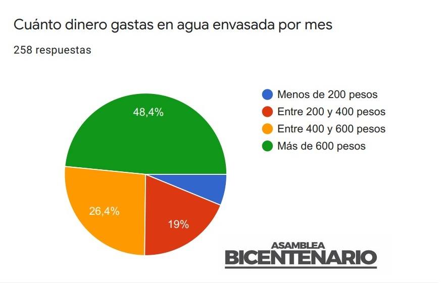 A la pregunta cuánto dinero gastas en agua envasada por mes.