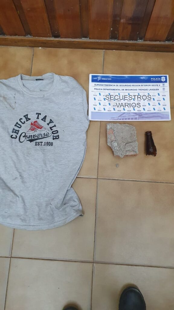 Los uniformados, cuando recorrían, por la calle Rivadavia en forma preventiva, al llegar a la intersección con la calle Changazzo, pueden observar que de una vivienda, en la cual se denuncian recurrentemente conflictos, salen tres hombres identificados como Jose Maria Bacci (51) Kevin Bacci (24) y Kevin Ruiz (21), los cuales comienzan a agredirlos arrojándoles piedras y botellas de cerveza, dañando el parabrisas y un trozo de ladrillo cerámico daña la ventanilla delantera derecha ocasionadores a los afectivos, lesiones leves en los brazos y rostro producto del estallido del vidrio y del golpe del elemento compacto, señala el parte de prensa policial.