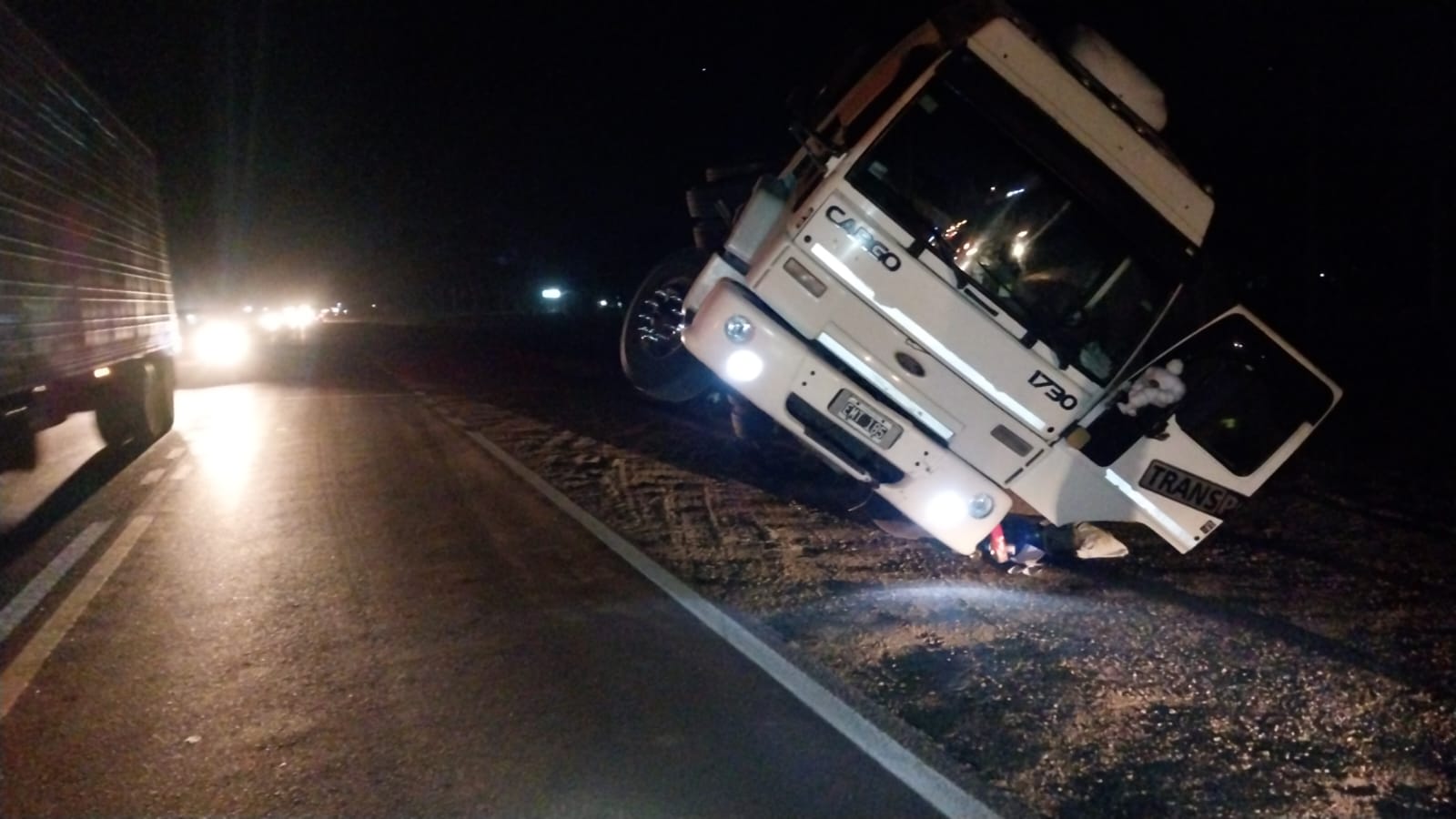 Volcó un camión de Trenque Lauquen en una subida a la ruta 5