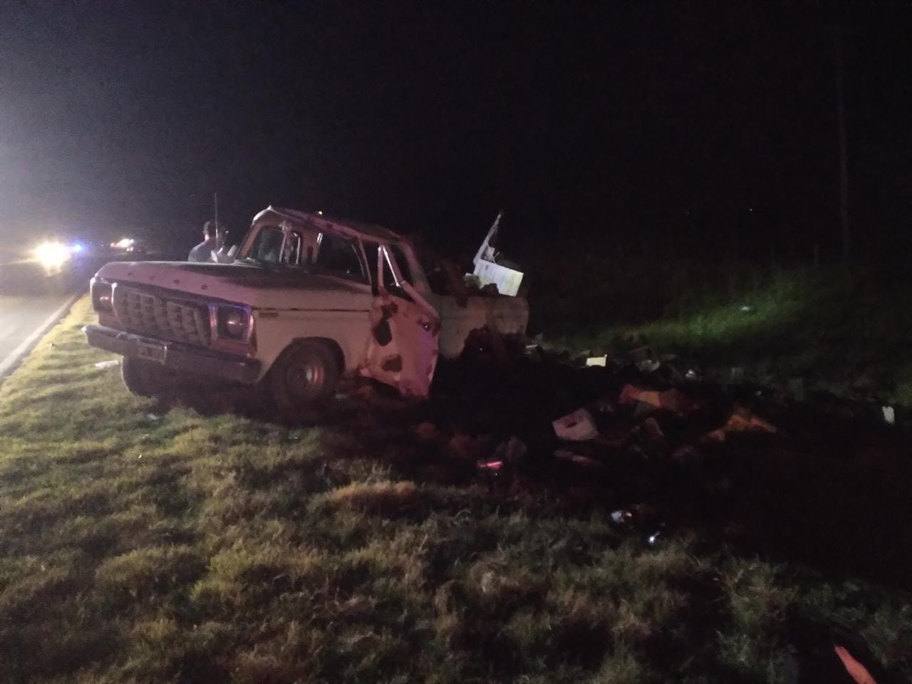 “Somos alertados por personal hospitalario de vuelco sobre ruta nacional Nº5. Acuden, además de personal policial y ambulancia, las unidades 16 y 17 de rescate vehicular, encontrando vuelco de unidad Ford F100 con tres ocupantes fuera del mismo. El conductor pierde el control de la camioneta por un problema mecánico, originando el despiste y posterior vuelco” señaló un comunicado.