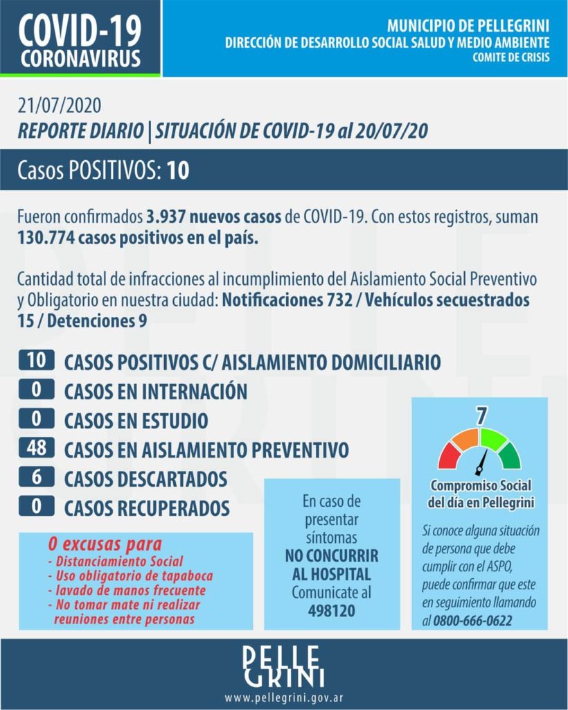 Pellegrini: ahora son 10 casos confirmados de Covid 19