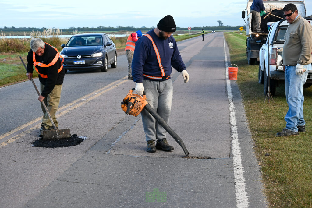 El municipio de Rivadavia realiza trabajos de bacheo en la 33