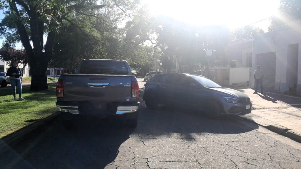 Una camioneta chocó contra un auto que salía del garaje en calle Mitre