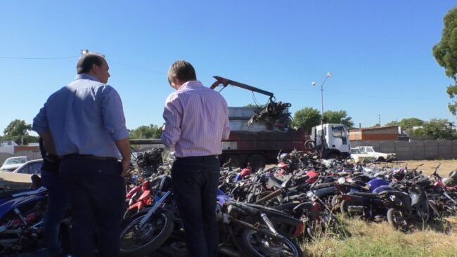 Compactan autos, motos y caños de escapes secuestrados: lo recaudado irá a la Biblioteca