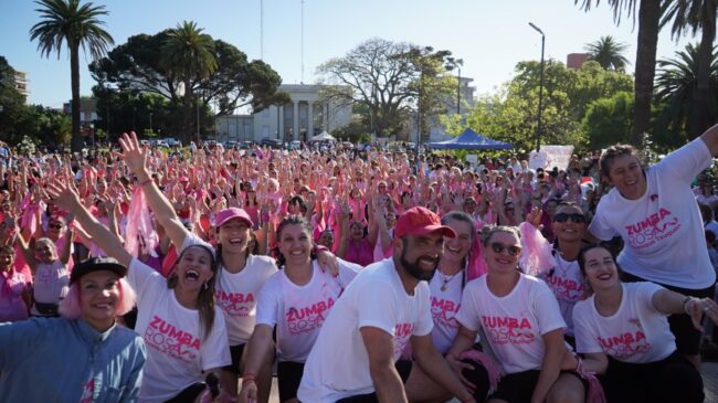 Amplia participación, baile y alegría para concientizar sobre el cáncer de mama en la jornada de zumba rosa en la Plaza