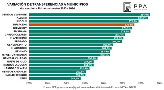 Los fondos que envió la Provincia a municipios de la región y su relación con la inflación