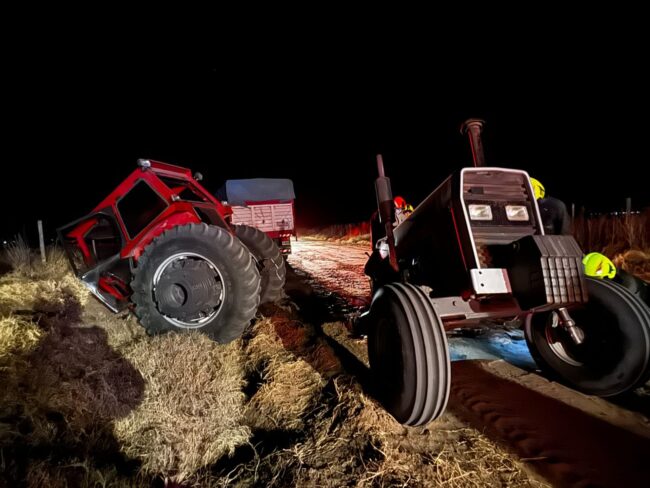Espectacular accidente entre un camión y un tractor en un camino rural